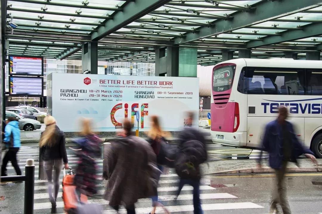 除了媒体传播,家博会品牌的传播足迹也遍布世界各地。印有CIFF logo的广告在意大利米兰、德国科隆、澳大利亚墨尔本、美国高点、拉斯维加斯、法国巴黎、土耳其伊斯坦布尔等全球知名家具商贸城市高调亮相。