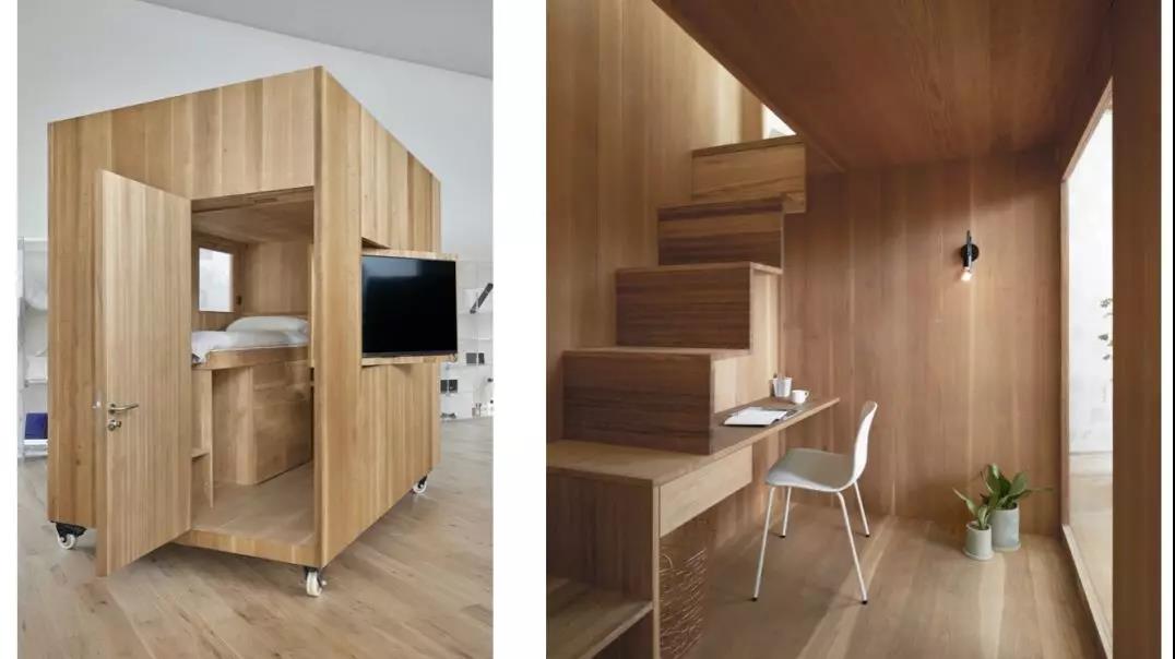 当这种“合居”形态拓展到整个城市环境,构成了对新的公共空间的探索。当下公共空间的特点在于:城市化进程带来的高地价、信息化发展造成的资讯爆炸和单位时间增值。这就促使了“共享”概念的普及,居民将室内无法放置的家居放到公共空间中供社区其他人使用。设计师通过将功能性家具融入小空间内,形成一系列可自由搭配的功能性“盒子”,可以放在城市空置的厂房中,让在大都市奋斗的年轻人可以根据自己的想法组合居所并形成共享社区。