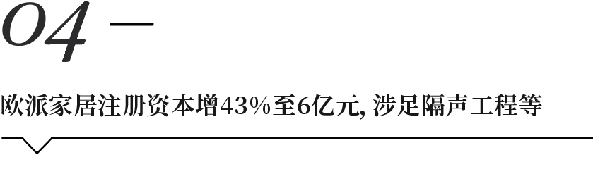 7月7日,欧派家居集团股份有限公司经营范围发生变更,新增隔声工程服务、建筑物空调设备、通风设备系统安装服务、建筑物采暖系统安装服务、建筑物燃气系统安装服务等服务。同时,欧派家居注册资本从“4.20亿元人民币”增加到“6.02亿元人民币”,增长比例为43.33%。(泛家居网)