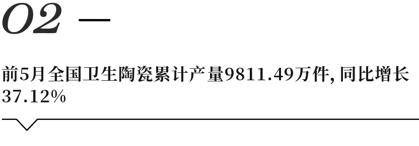 从已经可以统计的前5个月的数据看,全国卫生陶瓷累计产量9811.49万件,同比增长37.12%。前5月,规模以上卫生陶瓷工业主营业务收入累计320.19亿元,同比增长31.7%;利润总额累计24.57亿元,同比增长53.36%。水暖管道和建筑金属装饰材料(包含管道、五金件、龙头、花洒等)方面,1-5月,规模以上企业主营业务收入累计560.37亿元,同比增长30.7%。(卫浴头条网)