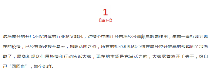 “广州建博会,隆重的、热闹的,带着仪式感的让建材行业人士集聚到一块,如似约定俗成的年味儿。”