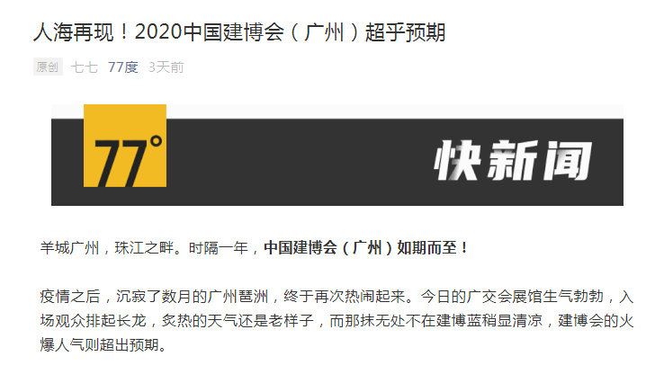 “2020中国建博会(广州)作为疫情后首个线下举办的大型展会,其实在‘设计’上也完成了一定程度上的转型尝试。”
