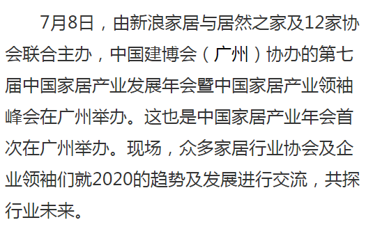 “今年各大展会都基本延期,而中国家居产业发展年会今年选择在广州,与建博会一同举办,代表着凝聚行业的力量,也说明建博会对行业发展的贡献得到了行业的认可和支持。”