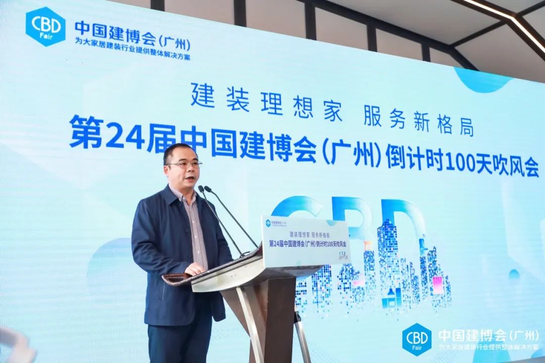 在吹风会上,广州市商务局副局长罗政、中贸展总经理刘晓敏、深圳市室内建筑设计行业协会会长于强、中国设计品牌网总策划吴文粒、科凡定制总裁王飚、派雅门窗董事长李钧洪、皇派门窗董事长朱福庆、欧派集团衣柜营销副总经理任建军、索菲亚集团品牌中心总经理王梦醒、海尔智家广州分公司总经理褚健中,共同开启第24届中国建博会(广州)100天倒计时。