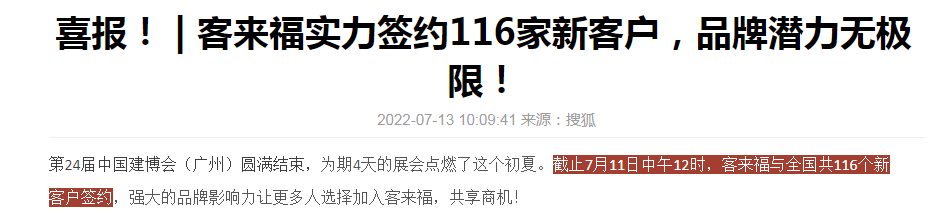 第24届中国建博会(广州)圆满结束,为期4天的展会点燃了这个初夏。截止7月11日中午12时,客来福与全国共116个新客户签约,强大的品牌影响力让更多人选择加入客来福,共享商机!