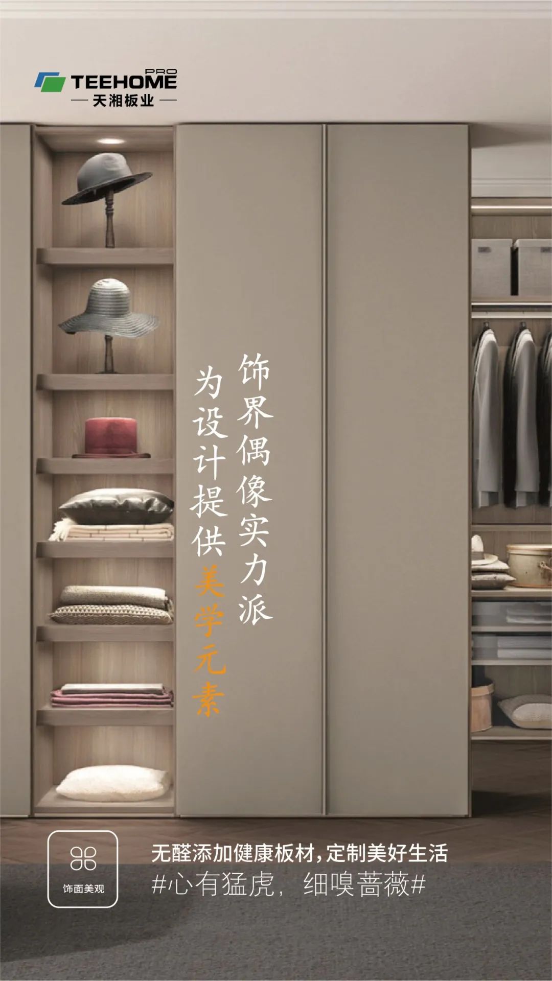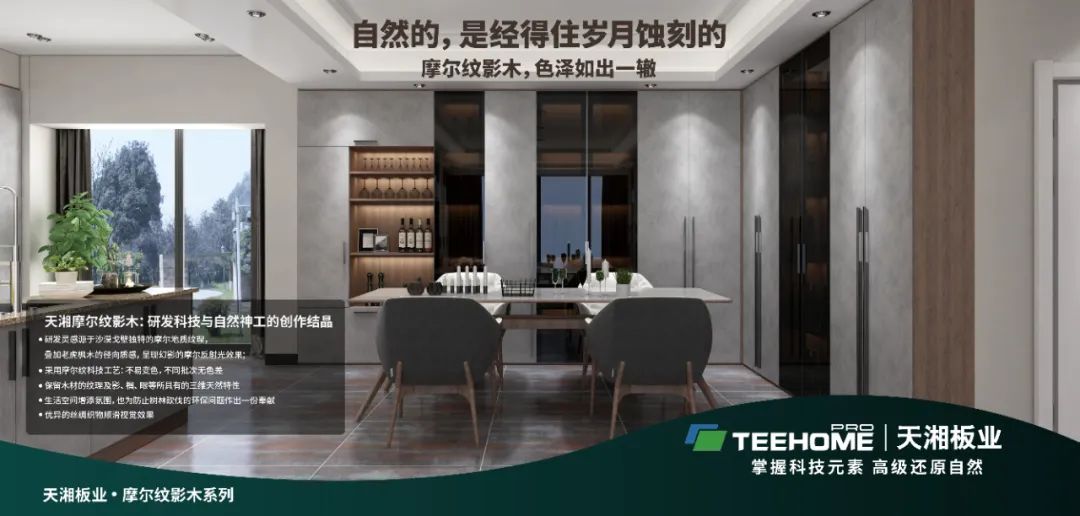 以超强的研发实力及智能化生产为基石,天湘板业高定系列搭配清爽的空间设计,用多面的光影、色彩、触觉感受,勾勒精彩空间,装点美好生活,诠释出高端生活的质感。