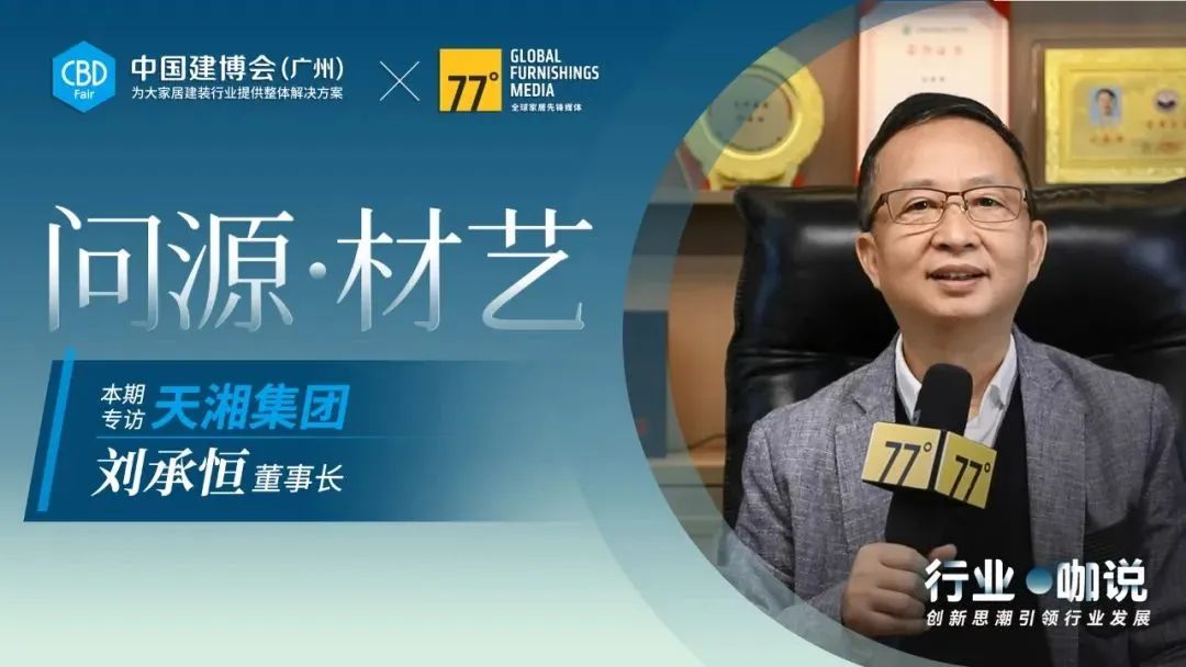 为探寻大家居建装供应链驱动产业升级的源动力,追溯极具前瞻性与颠覆性的新材料与新工艺,中国建博会(广州)与77度共同发起「问源·材艺」系列专访,本期专访走进天湘集团,对话天湘集团董事长刘承恒先生,一同探寻大家居建装供应链企业如何赋能定制与高定行业的应变之道。