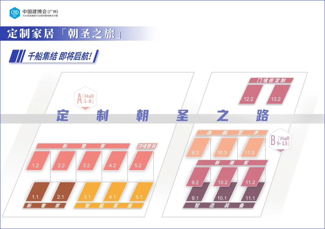 2023年,恰逢中国建博会(广州)创办25周年,展会将全新启用广交会四期展馆,将再一次迎来跨越式发展。定制作为中国建博会(广州)的主要展出题材之一,“中国定制尽在中国建博会”已经是行业普遍共识。2023年,中国建博会(广州)的定制主题展区以“定制美好家”为主题,将全面覆盖广交会展馆A、B区两个核心区域,展出规模超20万平方米。定制主题展区重磅策划打造“定制朝圣之路”:一是重点围绕大定制领域“三新一高”发展趋势,通过打造“新整家”、“新潮家”和“新奢家”细分主题展区,推动行业高质量发展;二是继续深化打造“α智能整装馆”与“π定制美学馆”定制两极工程,全面系统地展示行业迭代期内两大转型赛道的新形态;三是根据行业融合趋势推出“门墙柜定制馆”与“顶墙整装馆”定制新兴两翼,共同系统完整地为行业和观众呈现定制行业的最新业态,形成一条贯穿中国建博会(广州)A、B两区展馆的“定制朝圣之路”,让来自全国各地的观众饱览一次“定制家居朝圣之旅”。