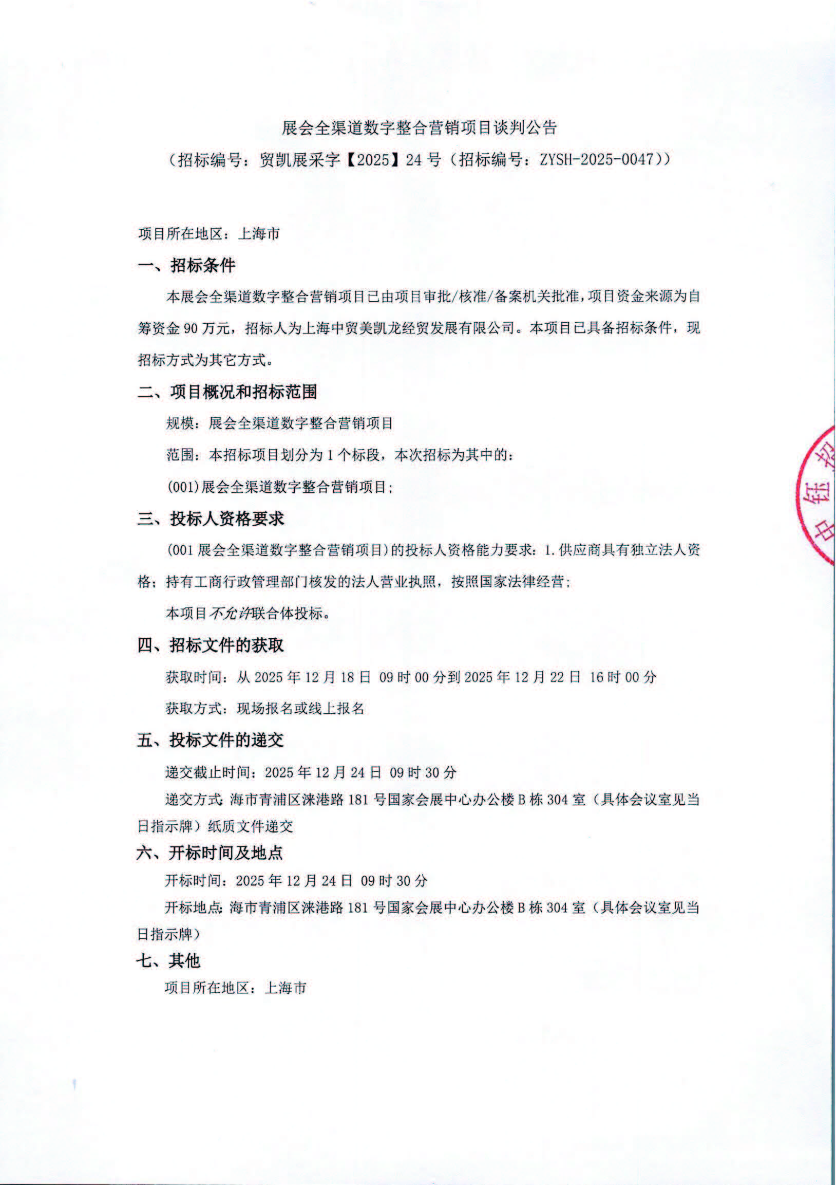 展会全渠道数字整合营销项目公开谈判采购公告